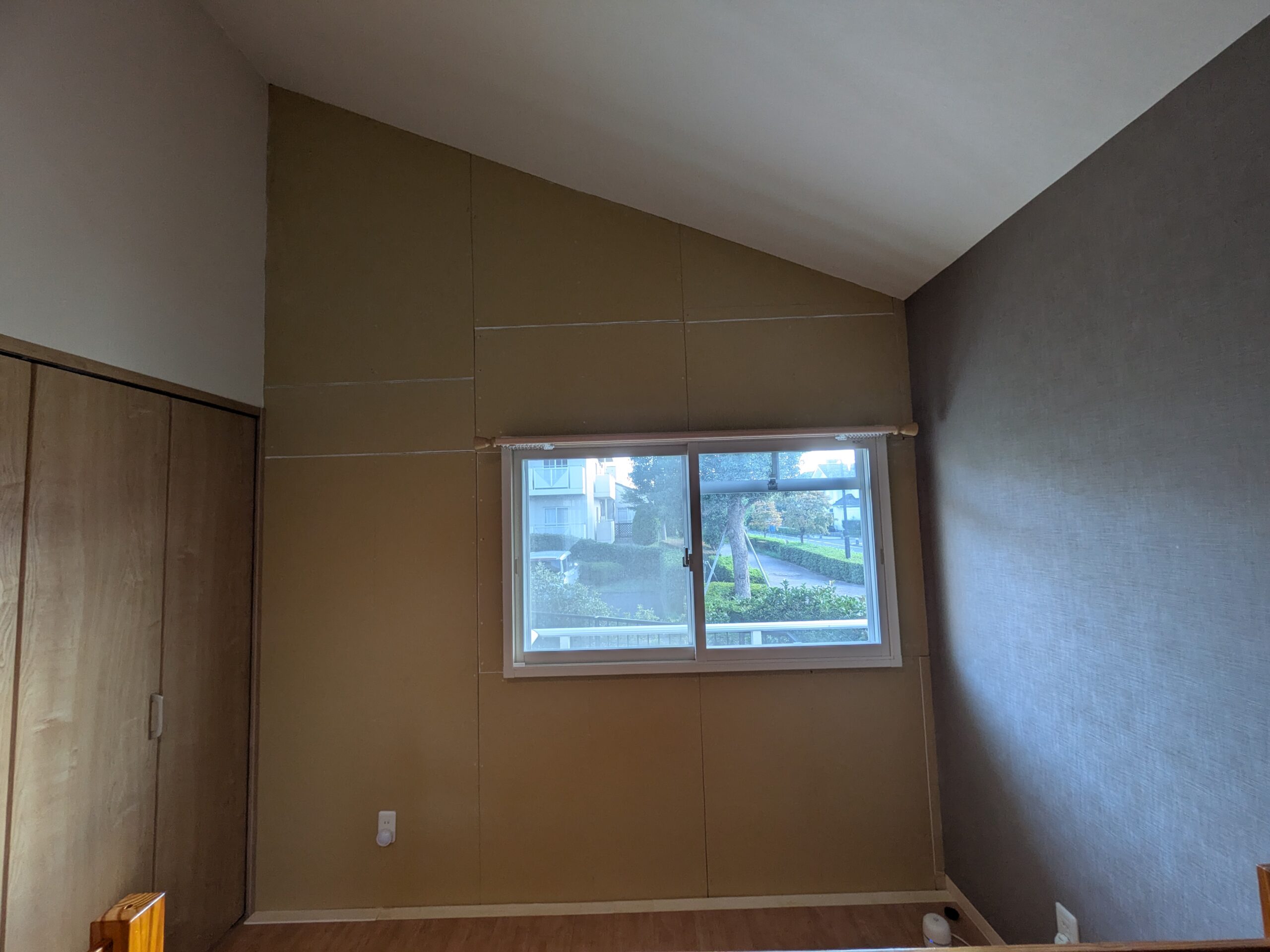 - 大工さんによるクロス下地のボード工事も終わりました。10月15日にクロス工事を行い終了となります。