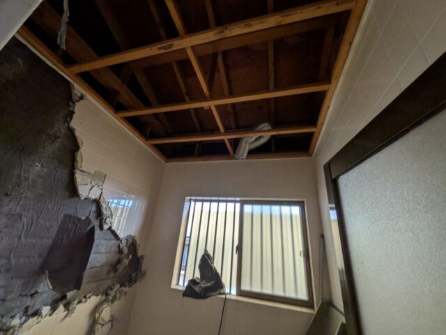 - 解体工事終了しました。この後は設備業者さんに先行設備工事をしてもらいます。