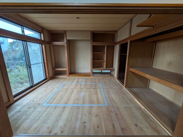 - 内部改修工事が始まる前に畳や襖は取り外しました。