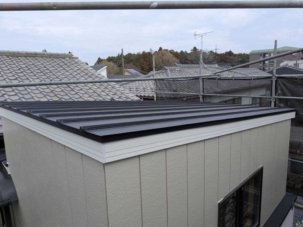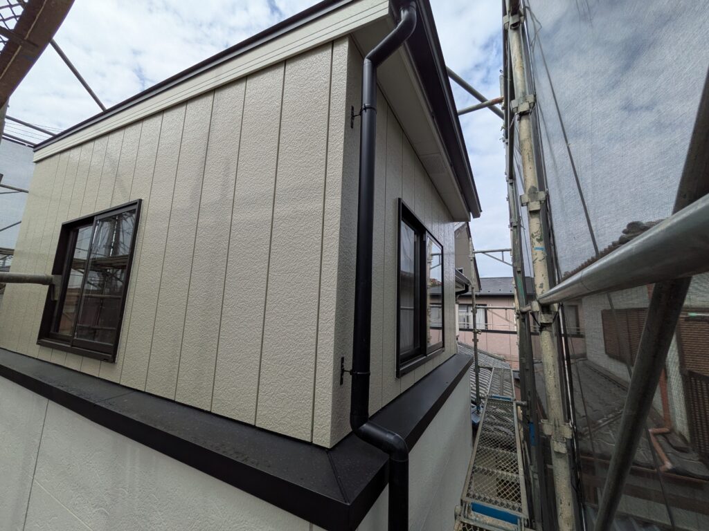 外壁:金属系サイディング工事完了・・・軽量で高耐久性のある外壁材です。