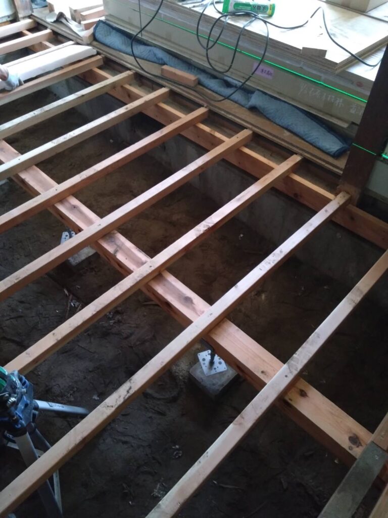 床下地は全部、新しい木材で造り直しします。