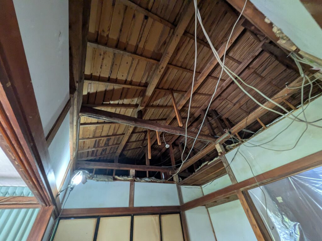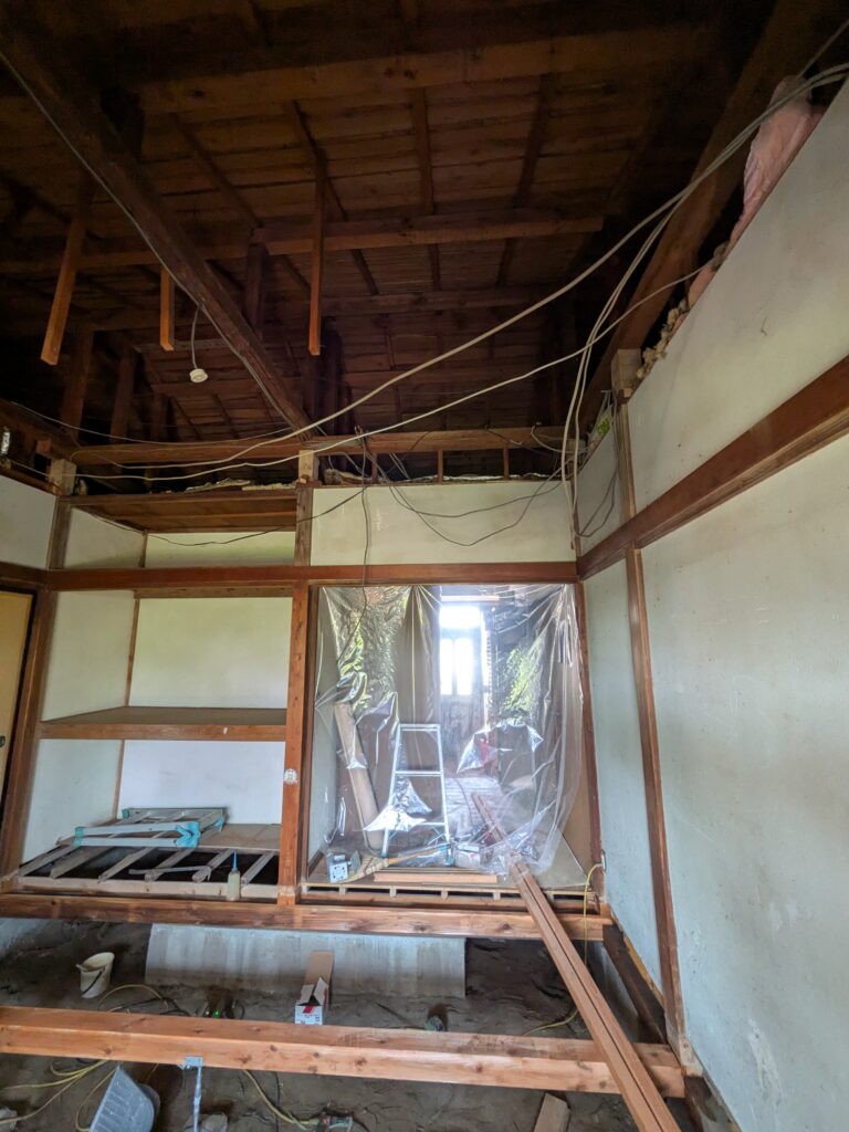 解体工事が始まり、床と天井を撤去しました。