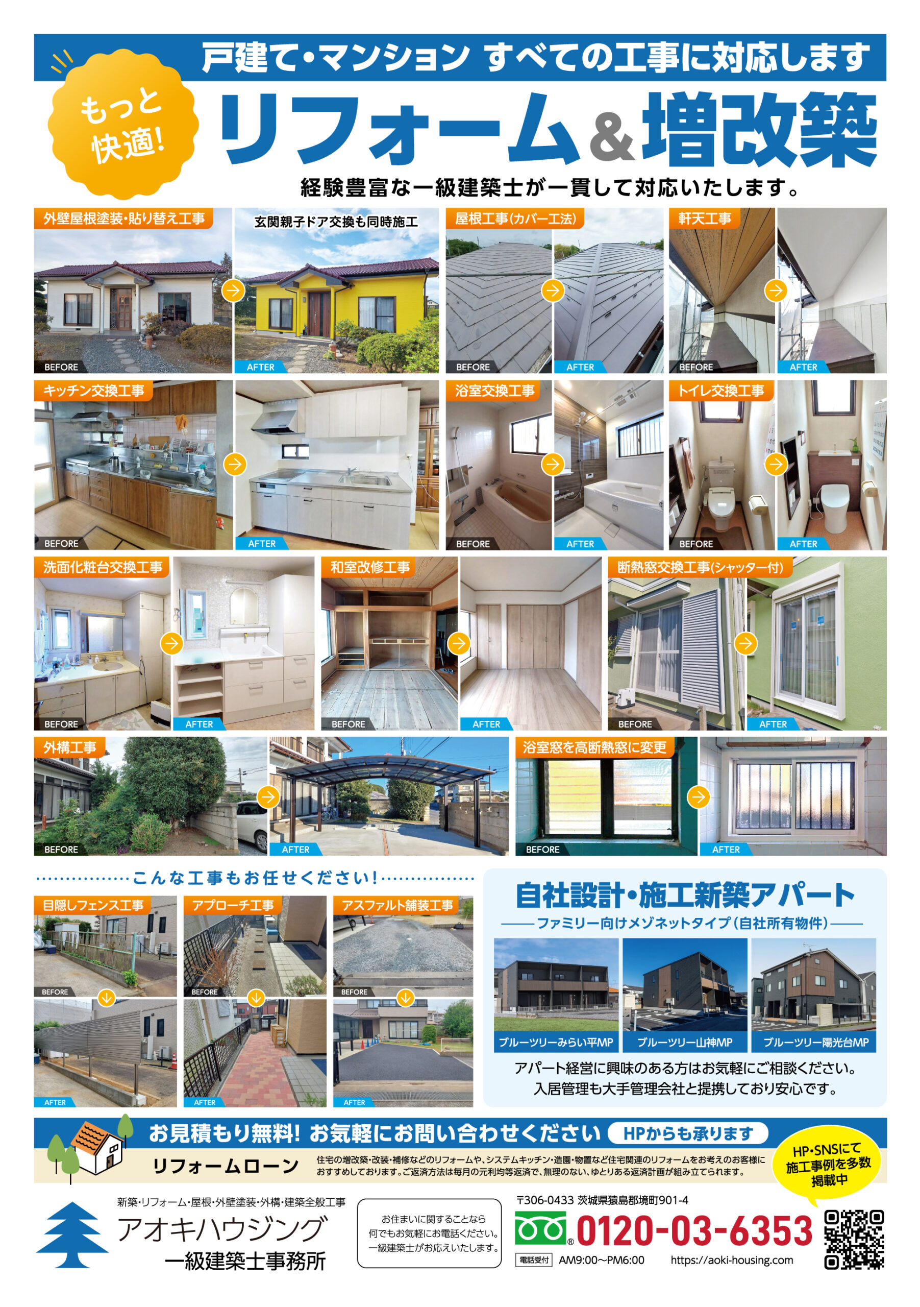 現場実績写真はホームページに多数掲載してありますが、一部をチラシに掲載しました。