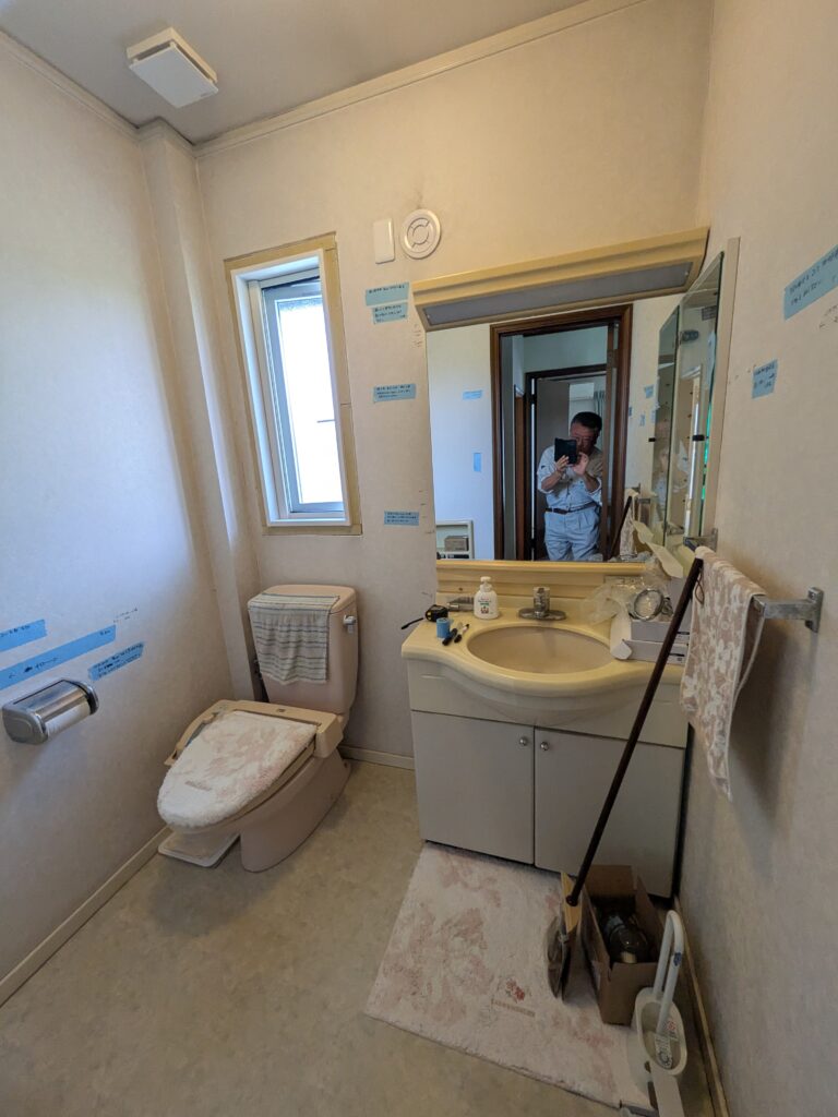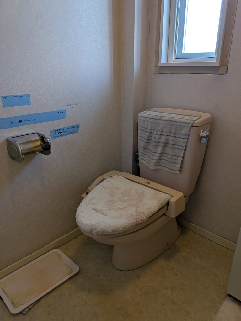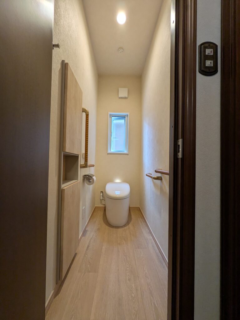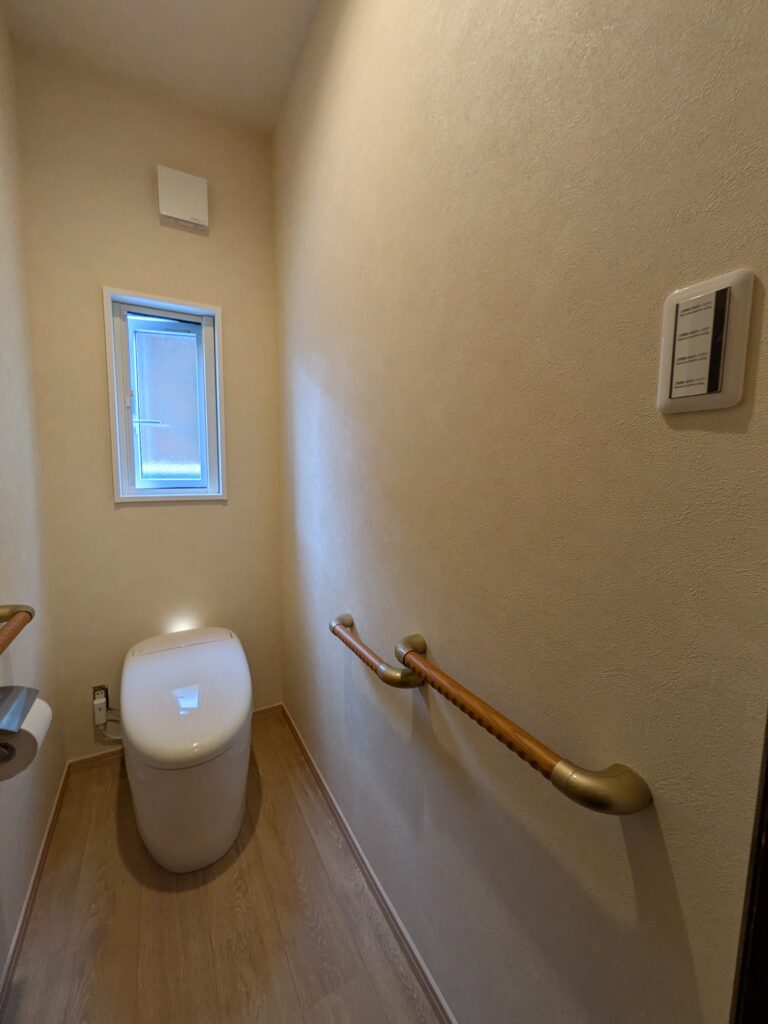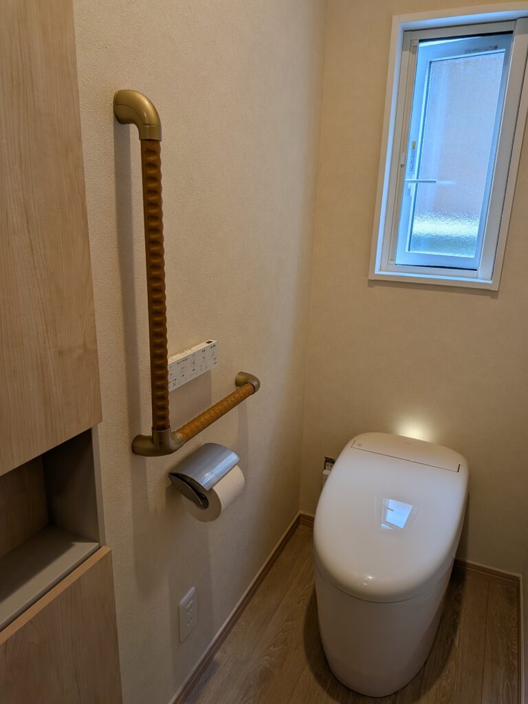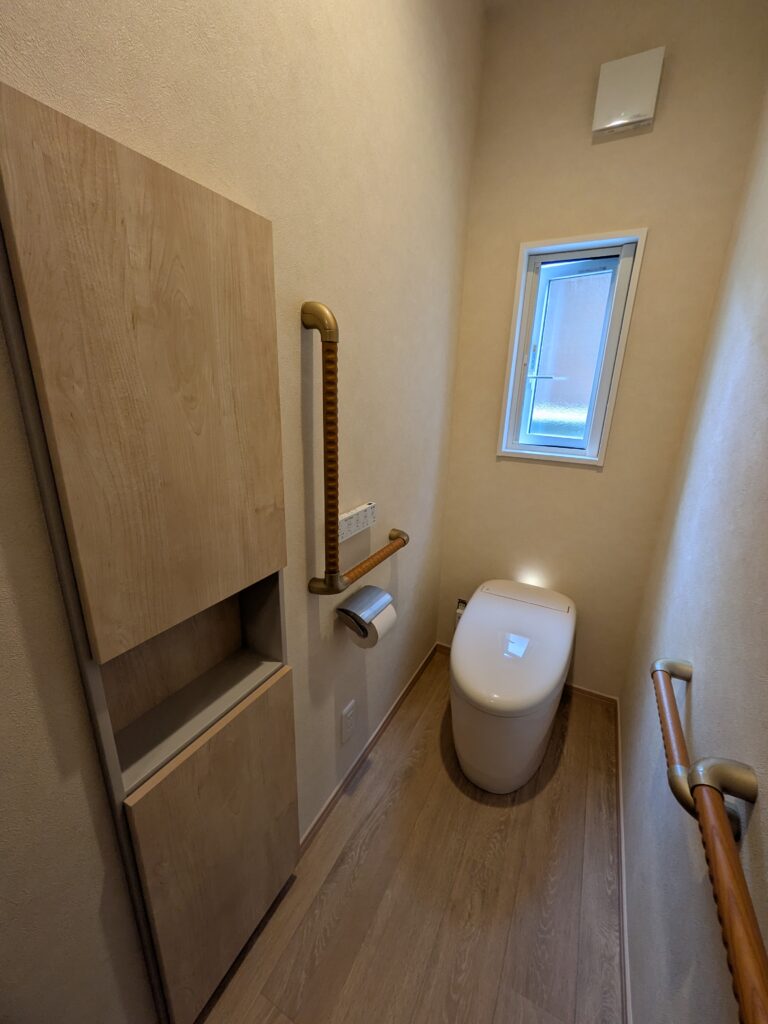 つくばみらい市 1階トイレ便器交換・収納棚・手摺設置工事完了 2階トイレ改修工事が始まります。