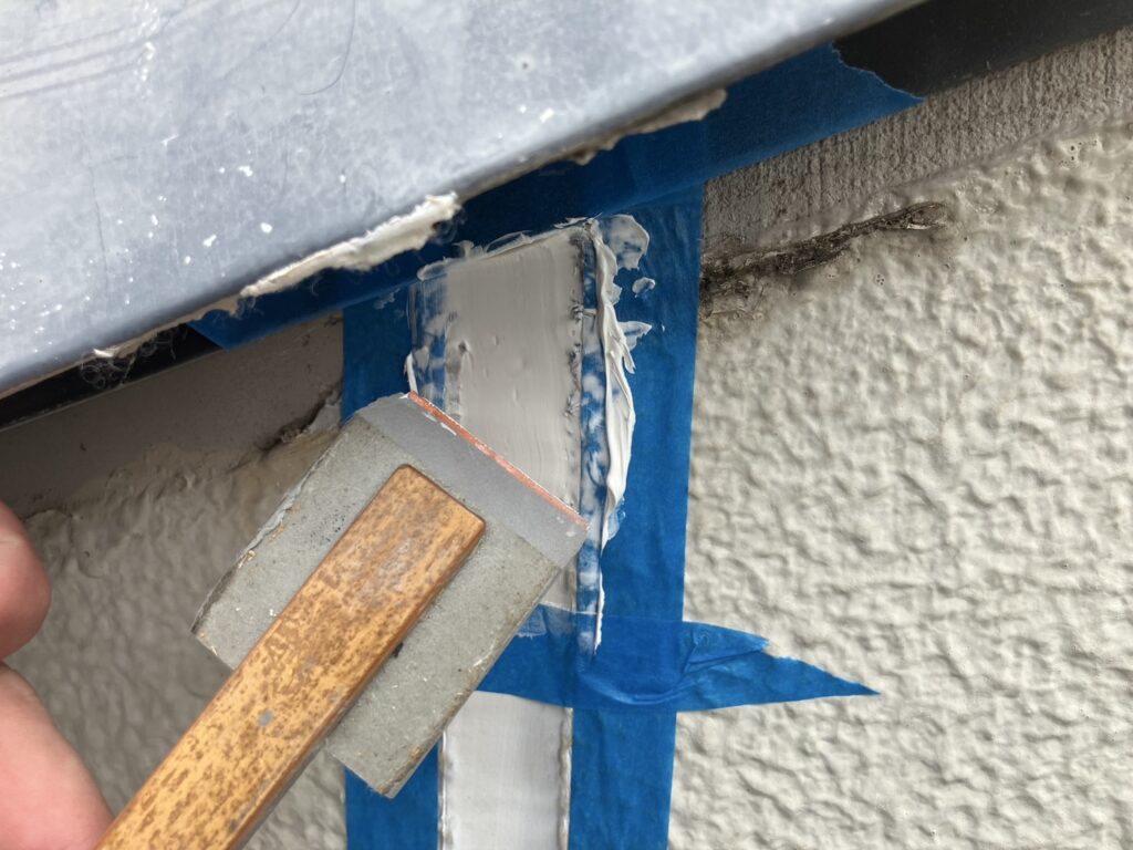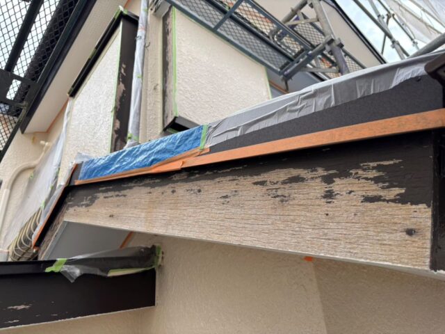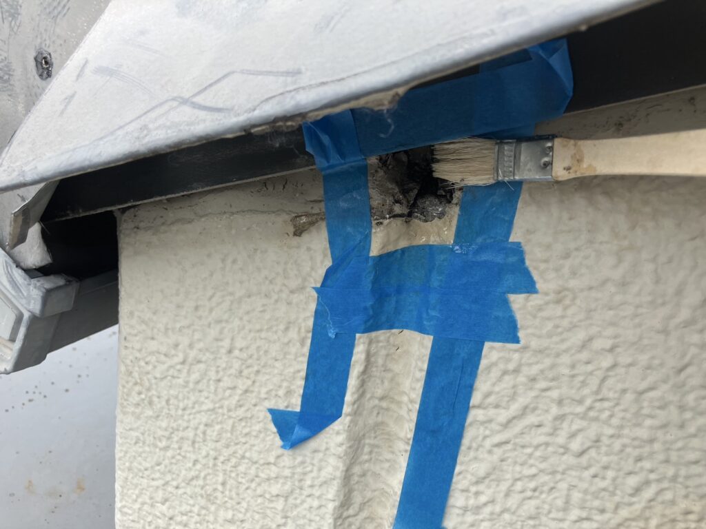 • 破風板塗装も屋根に色が付かないようにビニールで養生します。