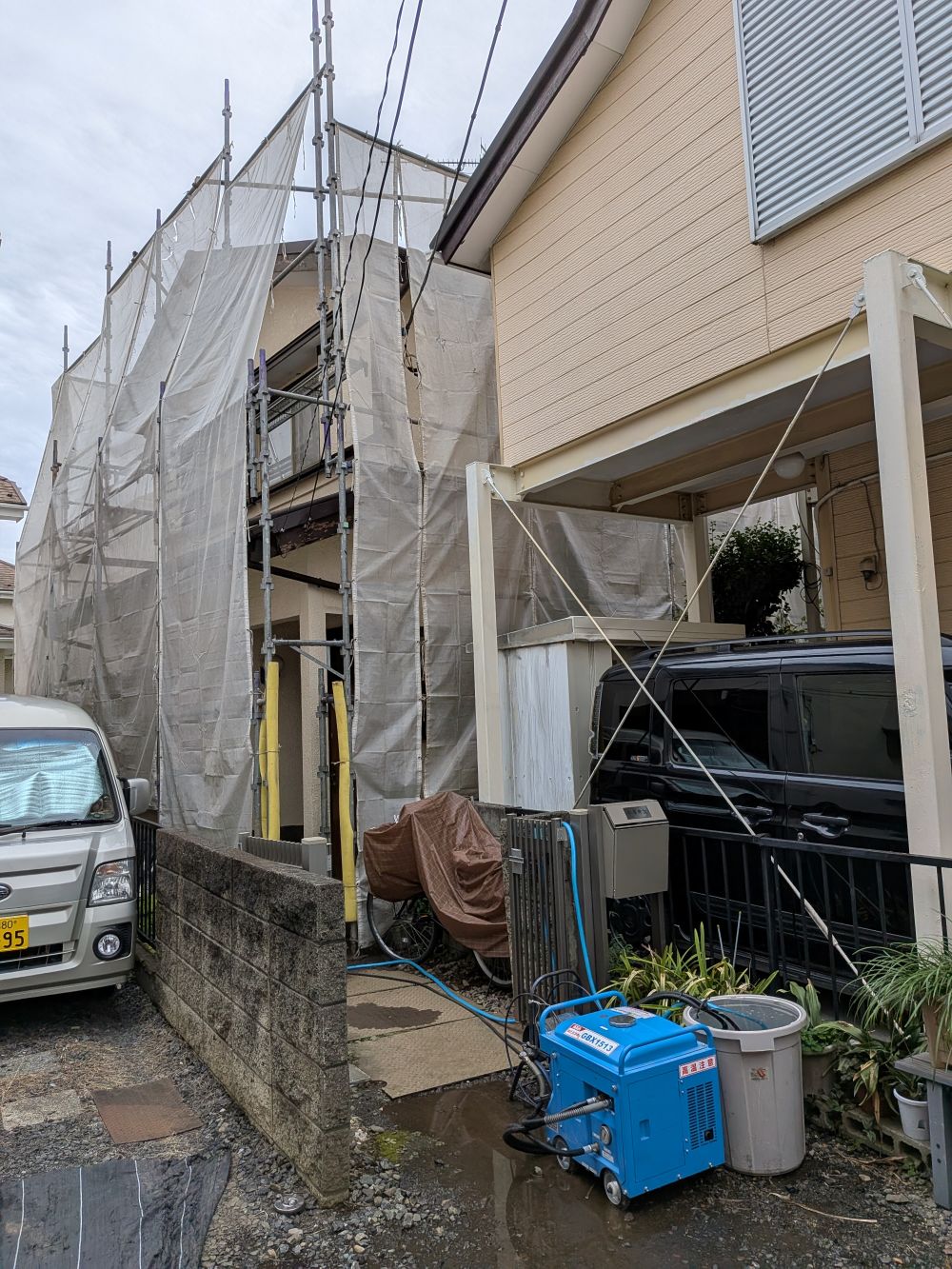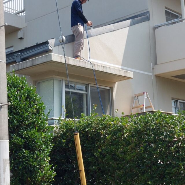 • 外壁塗装前に高圧洗浄機で汚れを落としてから塗装します。