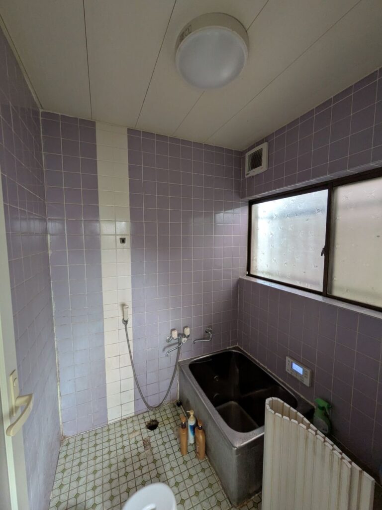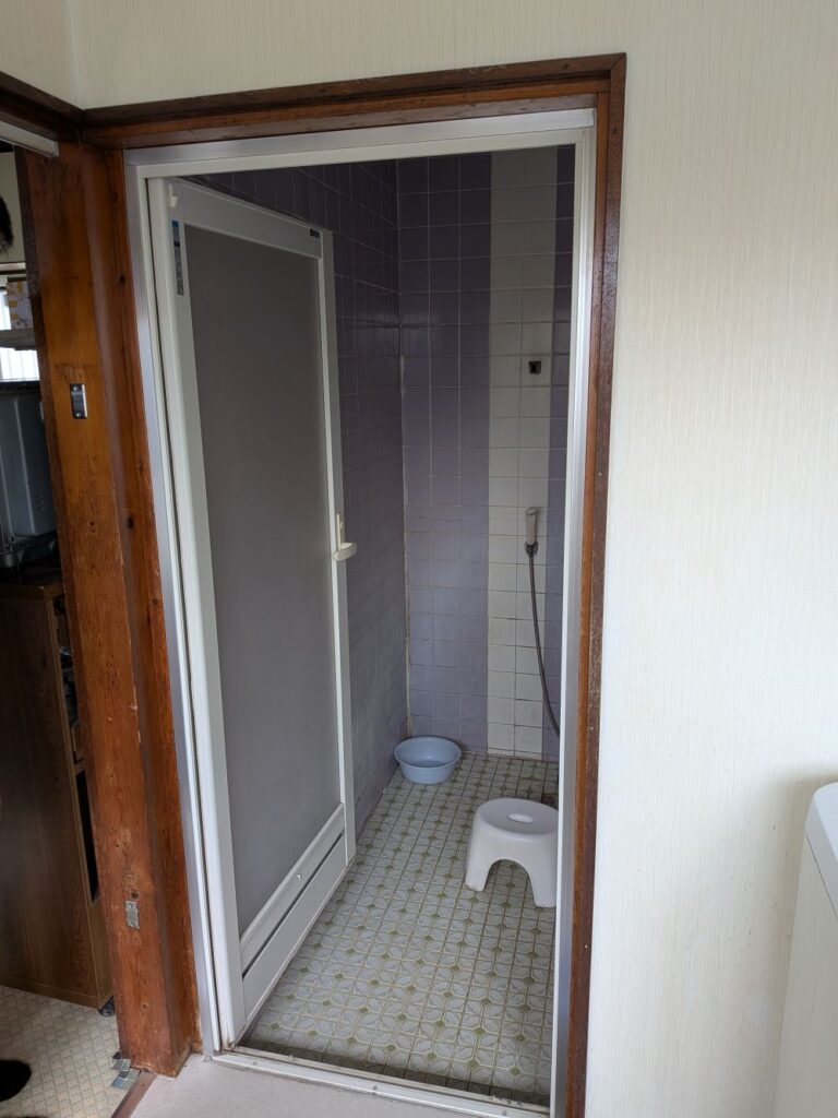 • 10月29日より浴室解体工事が始まりました。工事前の写真です。築40年くらいの浴室です.ユニットバスに改修工事をします。