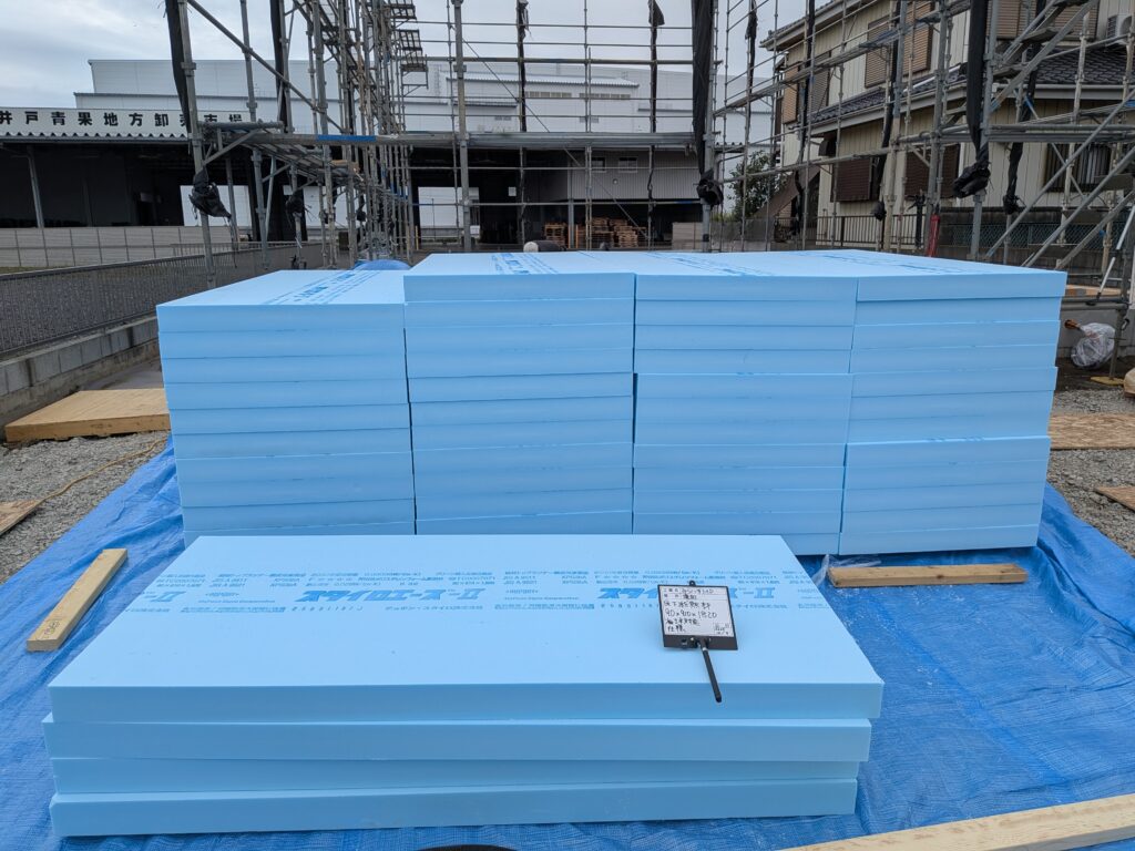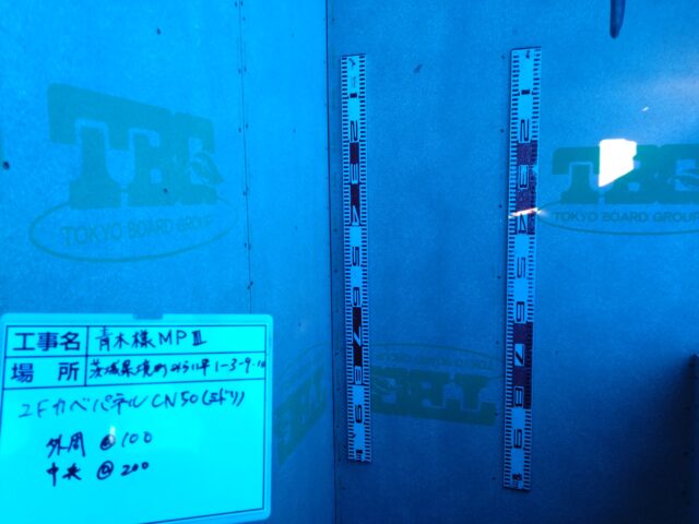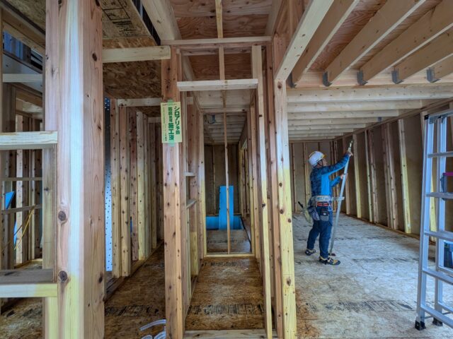 100mmの厚い断熱材を壁内に充填して壁ボードを貼ります。