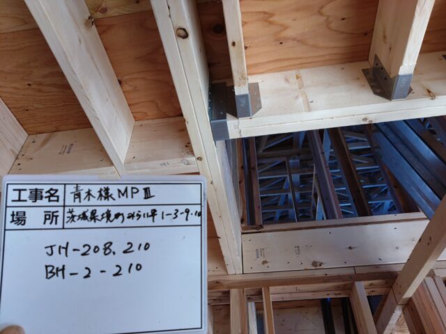 • 1階の壁パネルと2階の壁パネルを金物によって緊結してあります。