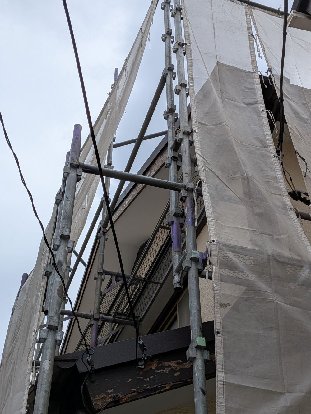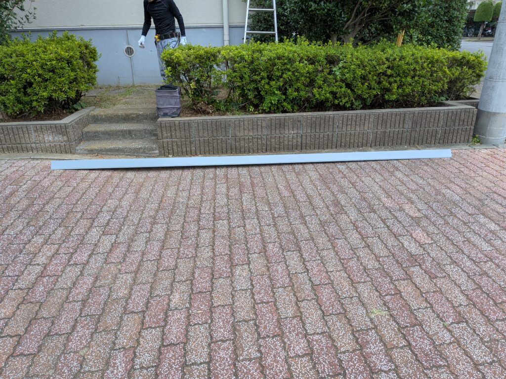 工事前の状況です。割れていたり破損してる箇所はありませんでしたが、再塗装をするか、吹き替えるかの時期にはなっていました。今回、カバー工法で施工致します。