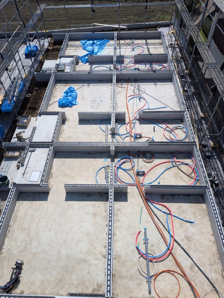 コンクリートの下地を打設しました。これでコンクリート面は平らになりました。
