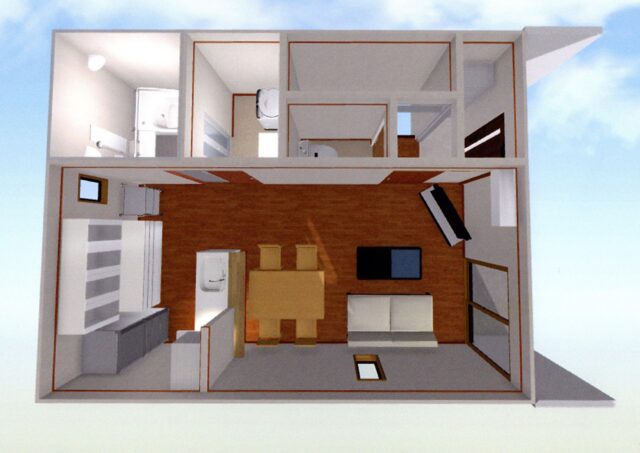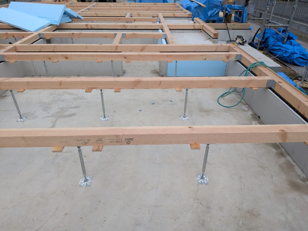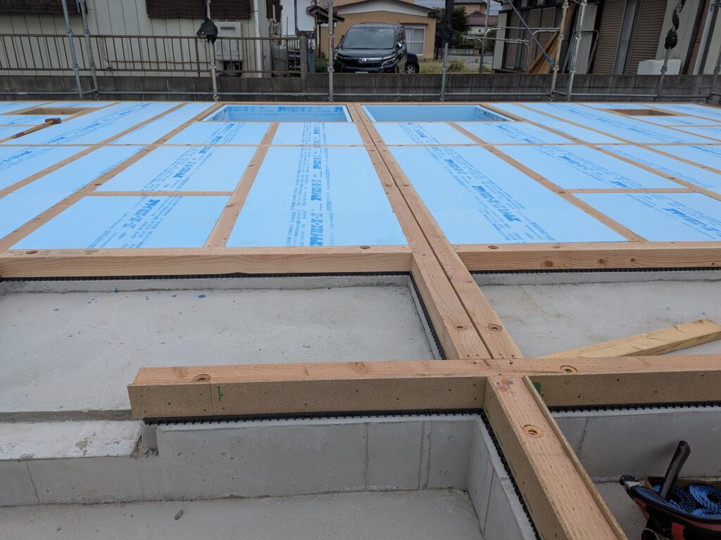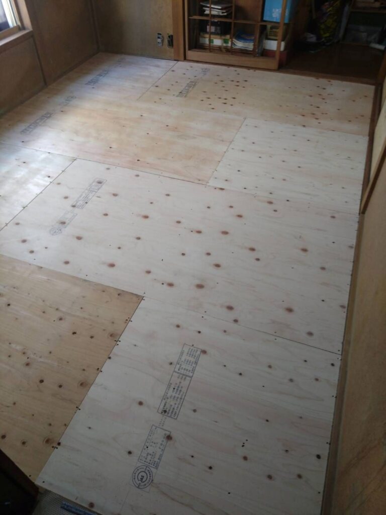 • 床材を2重貼りで仕上げます。下地ベニヤも12mmあります。この上にフローリングを貼っていきます。