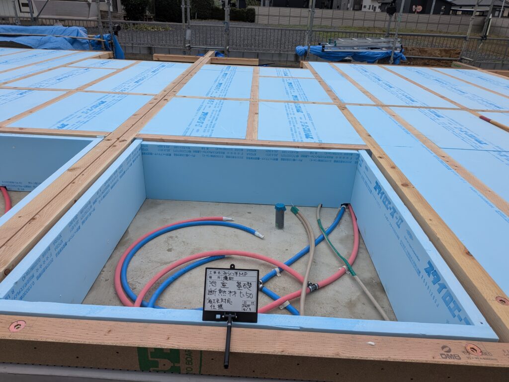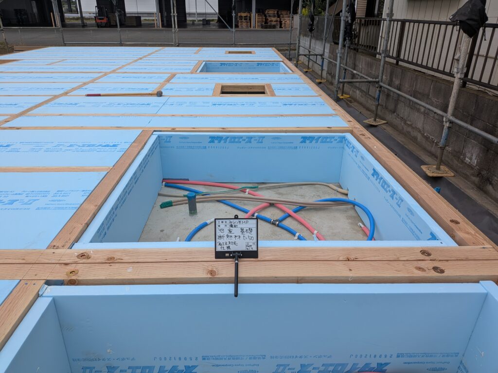 この後、浴室内先行配管後ユニットバスを組み立てます。9月6日予定です。