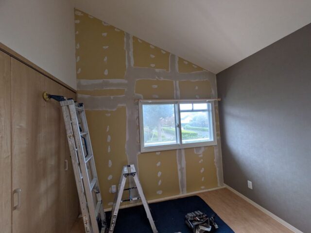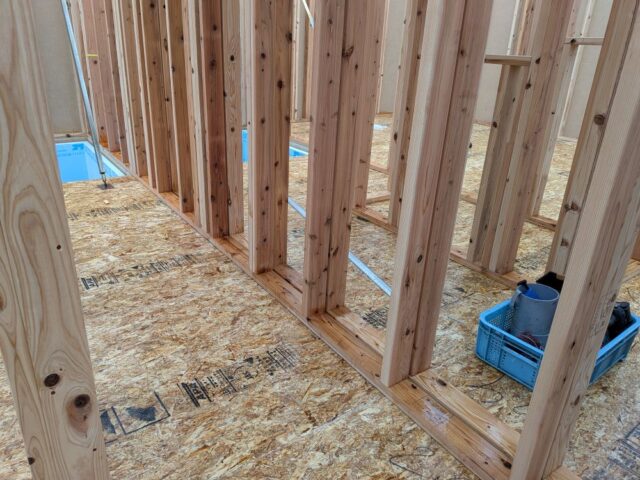 • 床材フローリングを貼る前に壁を仕上げていきます。