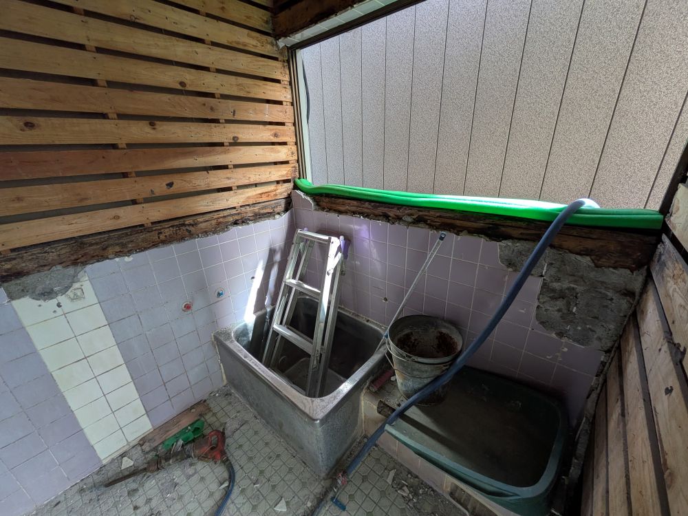 • 解体前に設備業者さんに水道を止めて水栓や蛇口を取ってもらい、浴室の給水・給湯の配管を止めてもらいます。