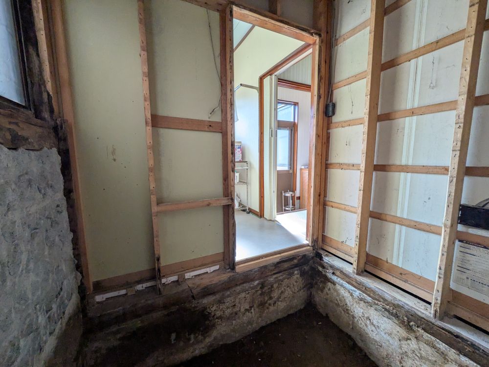 • 土間打設完了です。次の工事は11月3日に大工さんに急遽入ってもらい、土台や柱・窓台の傷んだ木材の補修とシロアリ処理を行います。その後は断熱窓交換工事と設備配管工事・ユニットバス墨出しを行い、11月7日にユニットバス設置工事を行います。
