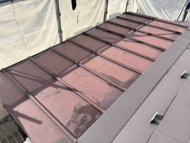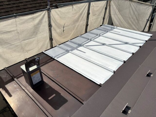 • 板金屋根、仕上げ2回塗りできれいに仕上がりました。