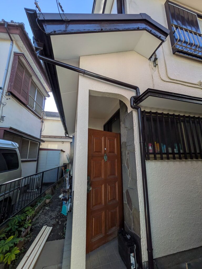 今まで付いていた枠を残し、枠に新しい枠をカバーしてドア本体を交換します。工事は1日で完了します。今回は外壁の塗装工事も行いました。