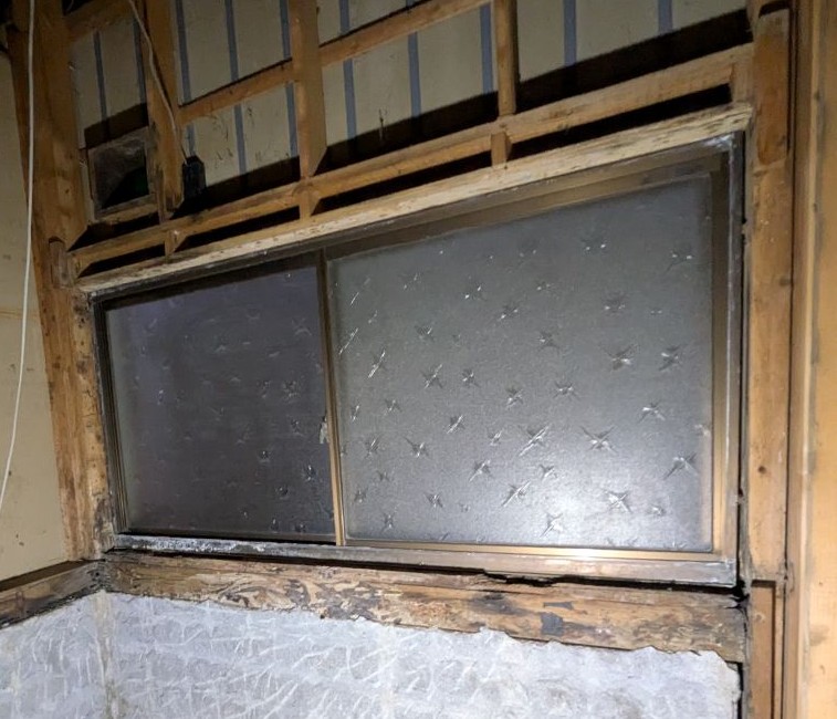 浴室に2か所付いていた窓も1ヶ所は撤去して壁で塞いでしまいます。