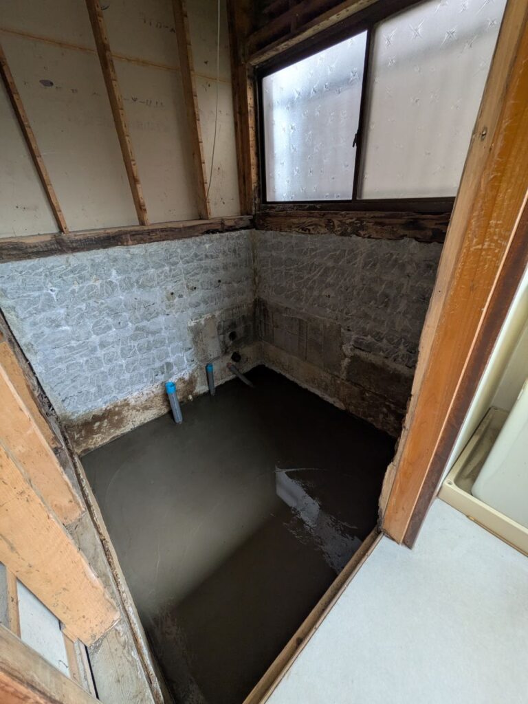 古河市 浴室改修工事 解体終了・設備配管・土間打設工事